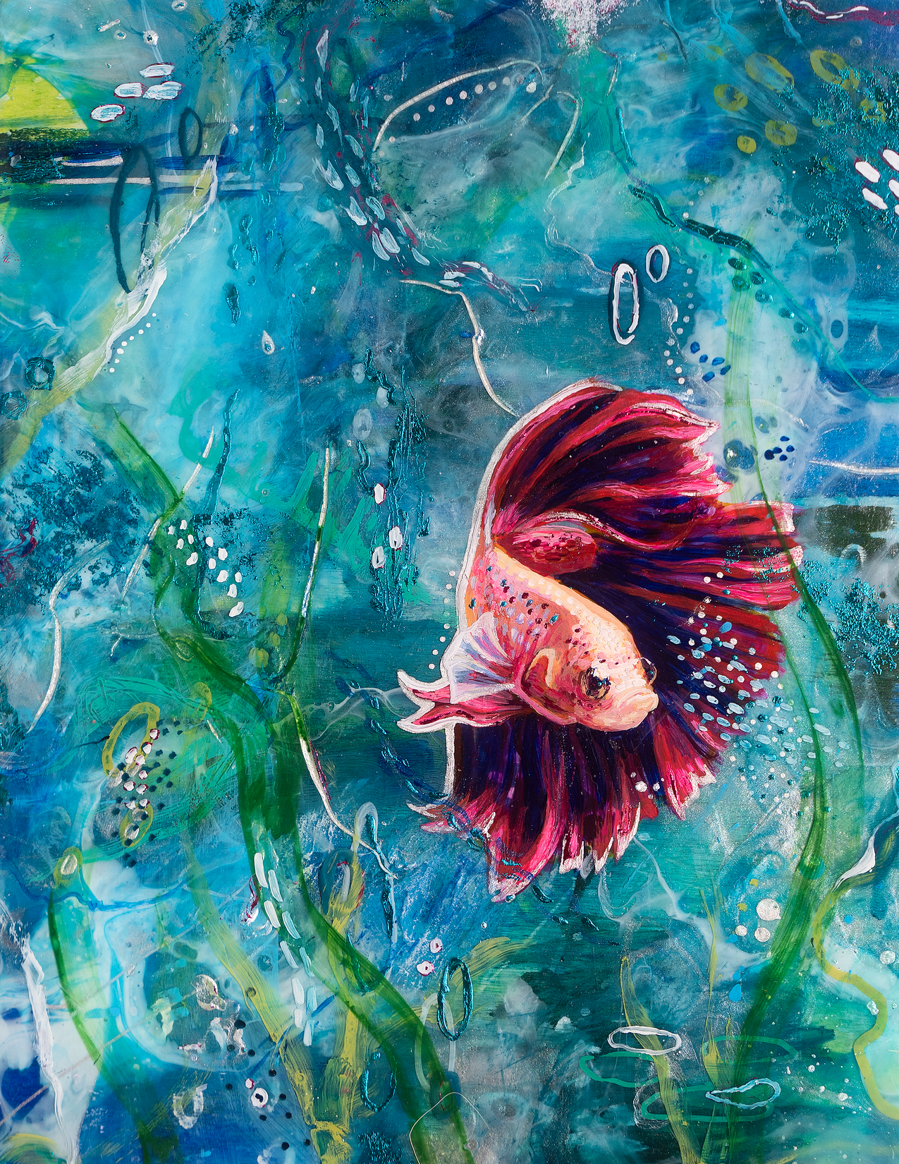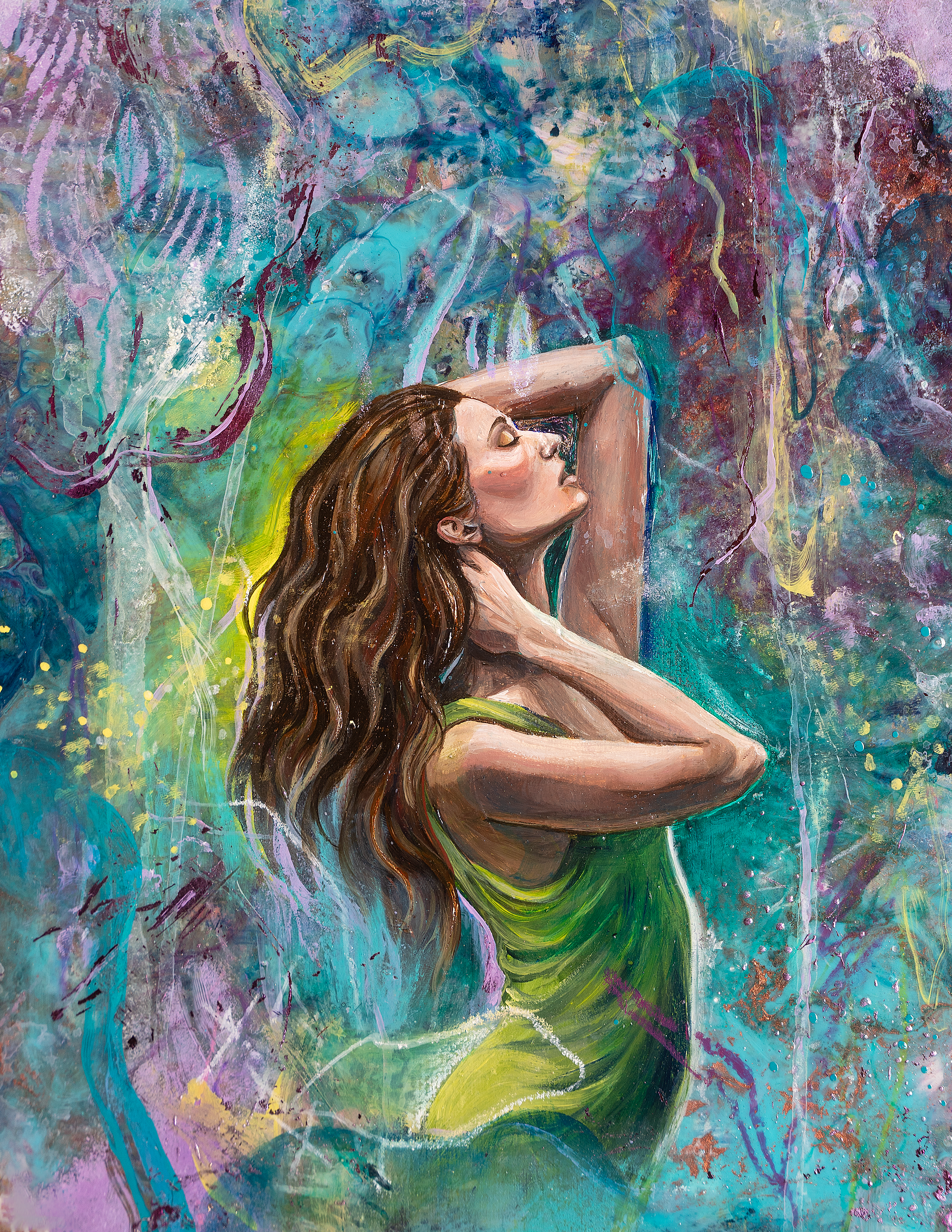 My previous work was all about femininity and the female form. I am fascinated by the beauty women bring to the world. This piece allowed. me to combine my previous subject matter with my current aesthetic.